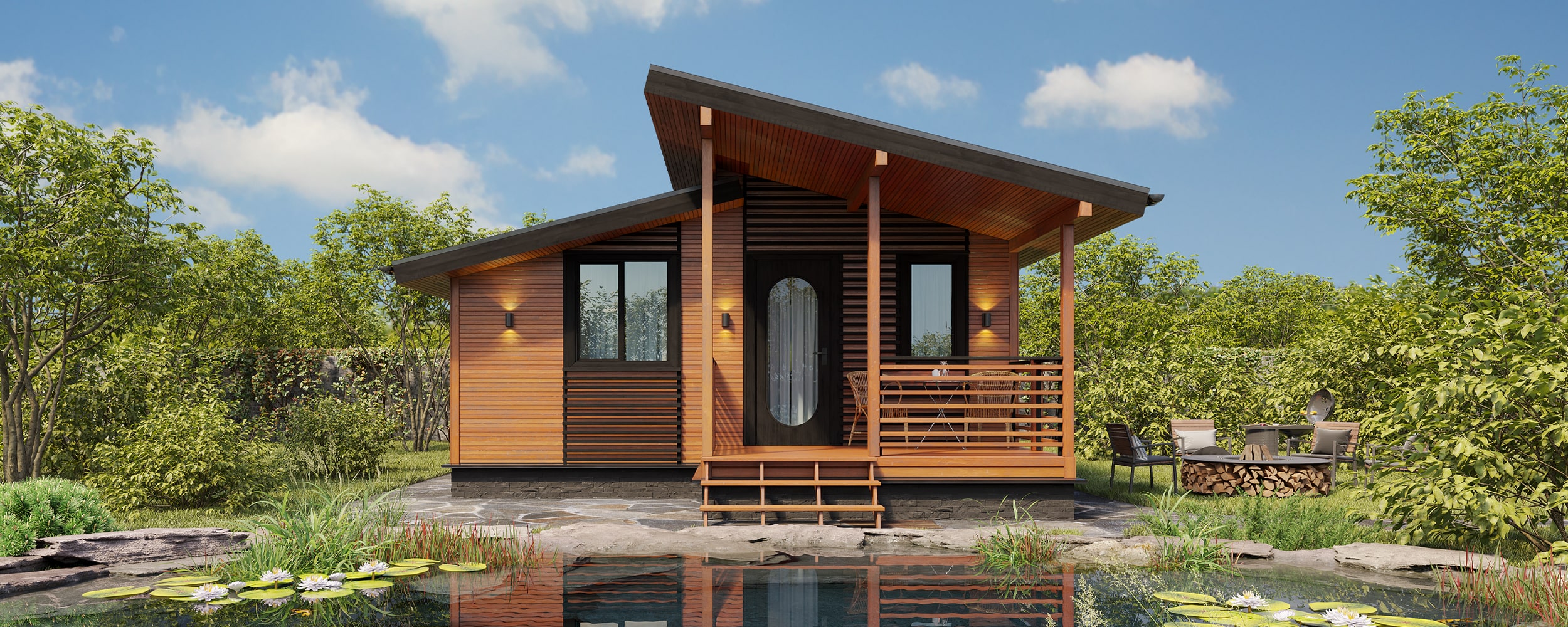 В доме будет комфортно жить с весны до осени, и приезжать зимой на выходные и праздники.