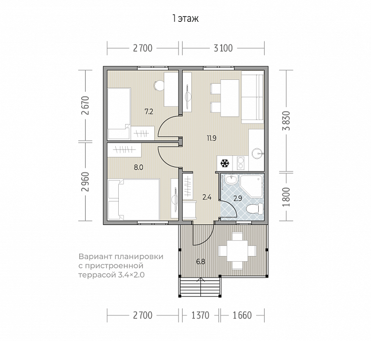 Особенность серии: широкое крыльцо, доступное уже в базовой комплектации. Дополнительно можно выбрать проект со вторым светом и террасой.