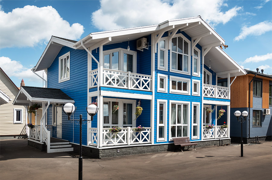 Отделка стен сайдингом, кровля из металлочерепицы и отделка цоколя придадут дому привлекательный внешний вид.