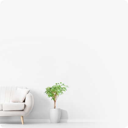 Гостиная и кухня образуют единое пространство — большое, наполненное светом и воздухом. Декор в виде живых зелёных растений добавит помещениям уюта.