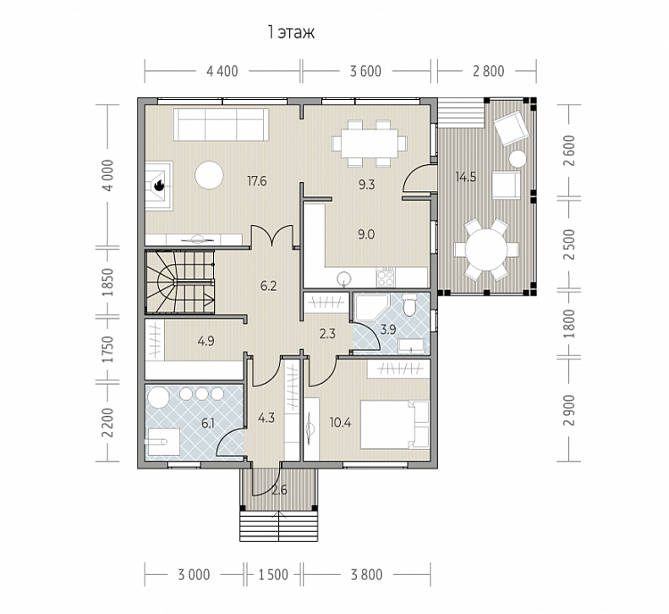 - 1 терраса