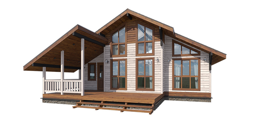 Фактура клеёного бруса, кровля из металлочерепицы и отделка цоколя придадут дому привлекательный внешний вид.