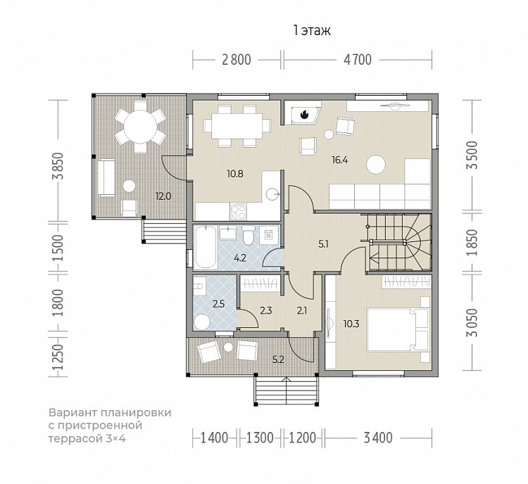 Особенности серии: крытые балкон и крыльцо увеличенной площади, доступные в базовой комплектации. Дополнительно можно пристроить просторную террасу или навес для автомобиля.