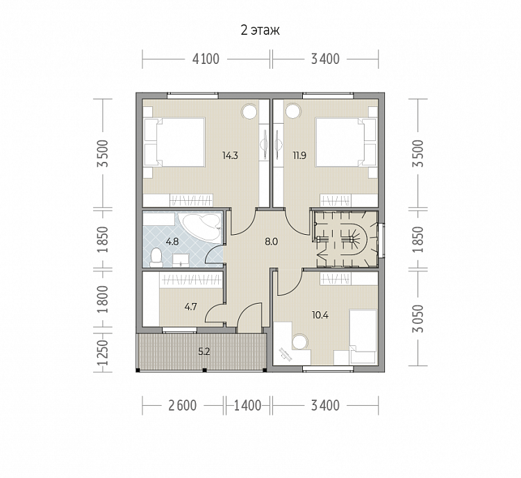 На втором этаже зона отдыха с тремя спальнями и балконом.