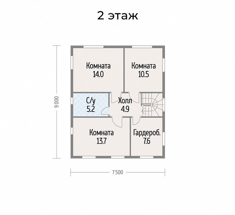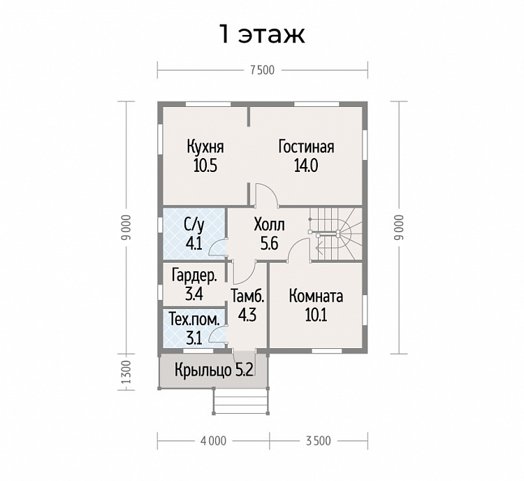Лестница:двухмаршевая, поворотная с забежными ступенями