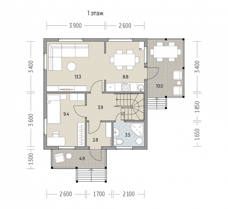 Наличие системы вентиляции кухни и санузлов, а также звукоизоляция перегородок делают проживание в доме комфортным и удобным.