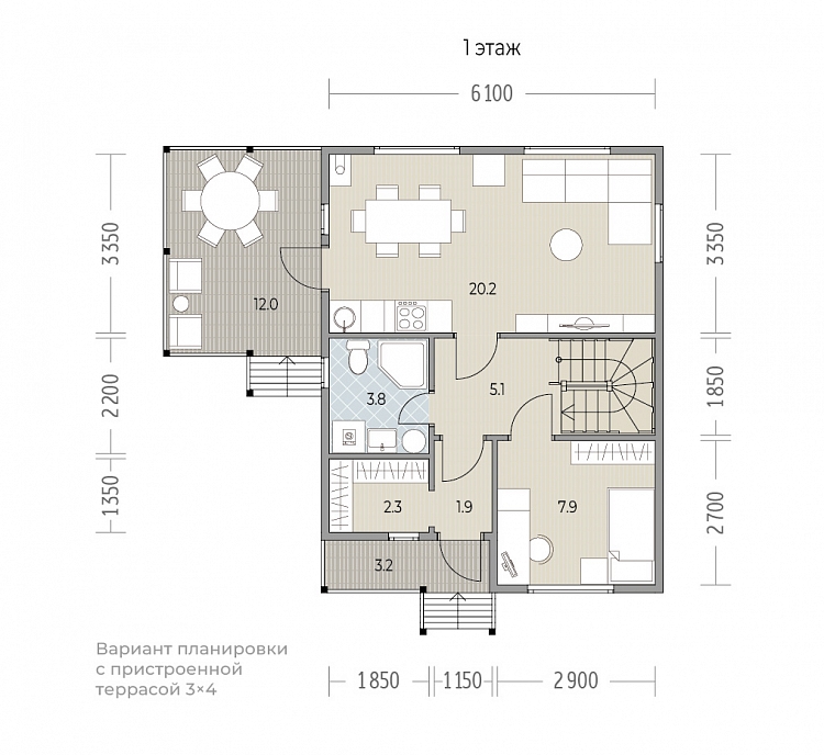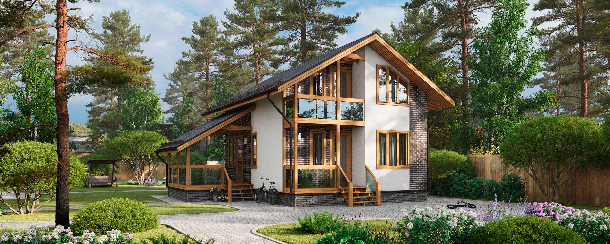 Особенности серии: крытые балкон и широкое крыльцо, доступные уже в базовой комплектации. Дополнительно можно пристроить просторную террасу или навес для автомобиля.