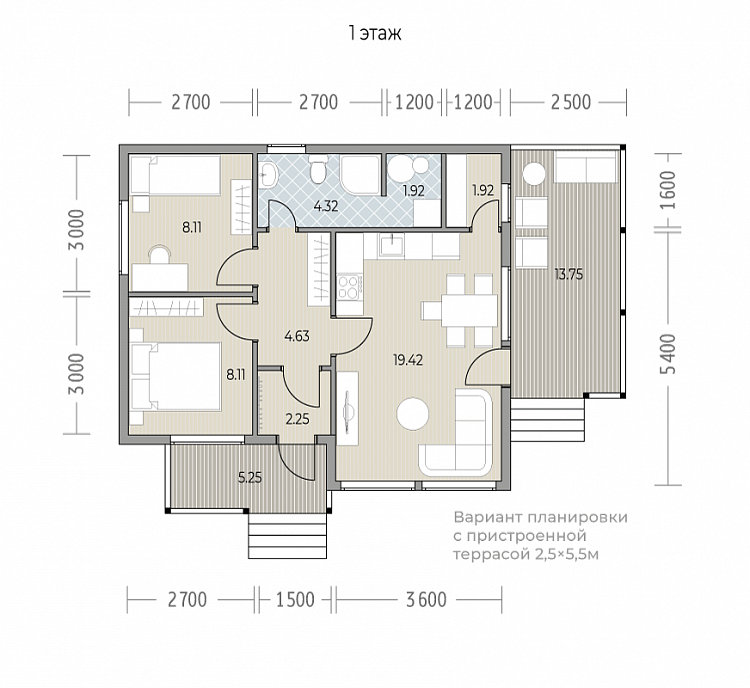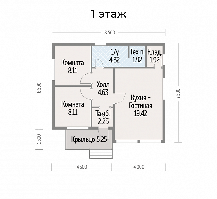 Наружная отделка: сайдинг «Технониколь», цвет «Эдельвейс» (серый), по ОСП 9 мм