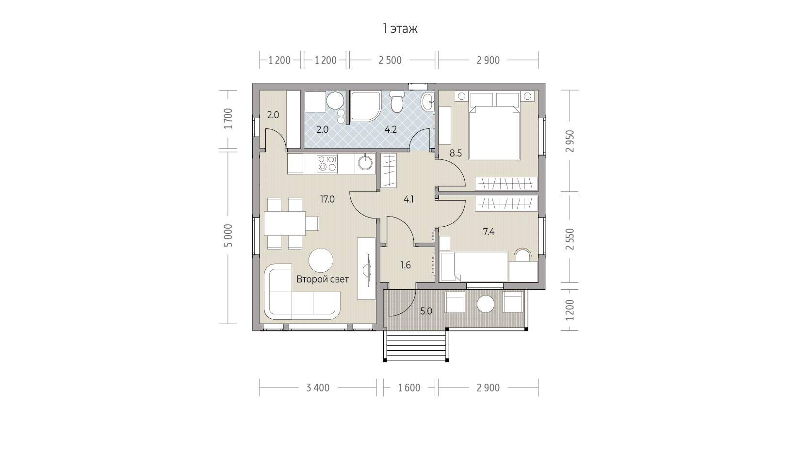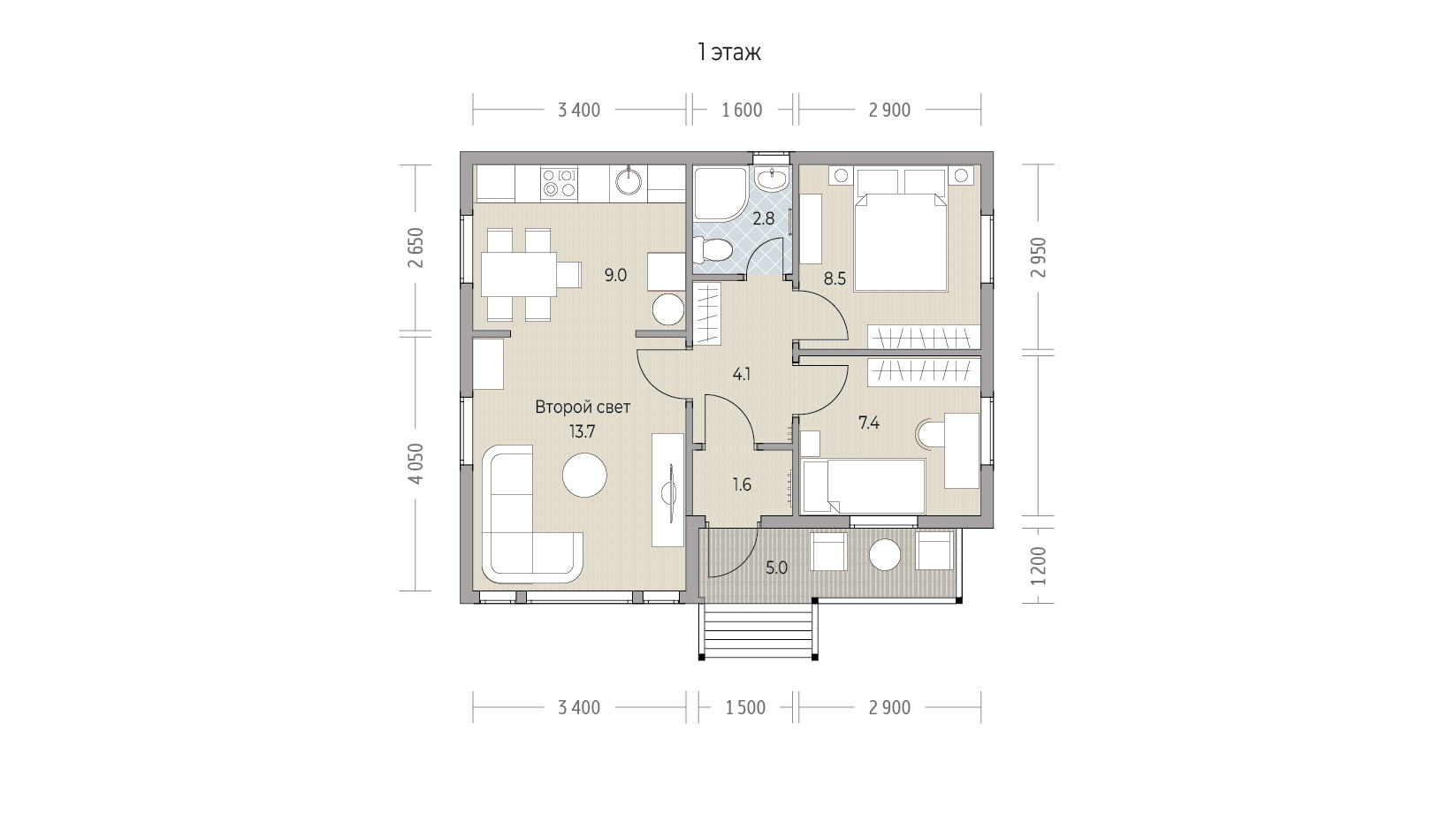 Во всех проектах серии предусмотрена светлая и просторная кухня-гостиная, две изолированные комнаты, холл, санузел, тёплый тамбур. Идеальный вариант как для семей с детьми, так и для пожилых людей: отсутствие второго этажа и лестницы делает его удобным и безопасным.